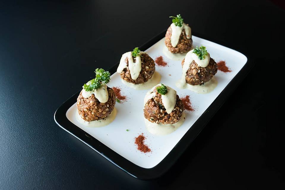Falafel – the lightly spiced falafel from Riad includes spiced yoghurt and sesame seeds throughout for a crunchy dish with a kick. This variation on a favourite means it’s definitely one to try in your next tapas selection.