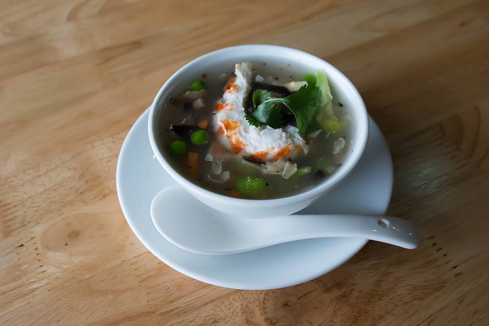 We start off with the Seafood Soup. The soup is well seasoned and has a thick consistency. Dotted with vegetables, what looks like a prawn rests in the centre of the bowl. To our surprise, the texture of the prawn is almost like the real deal.