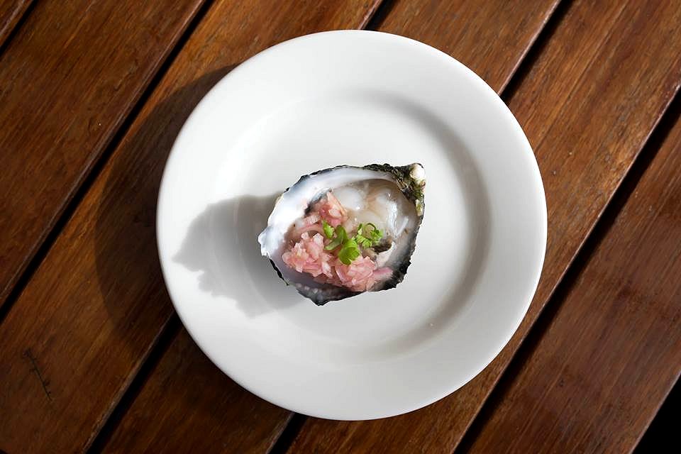On arrival guests were welcomed with a glass of Bird in Hand’s ever-popular light and delicate 2017 Sparkling Pinot Noir with an Oyster and Scallop Tartare. The entrée was extremely fresh with a beautiful composition of oyster to scallop, garnished with red onion.