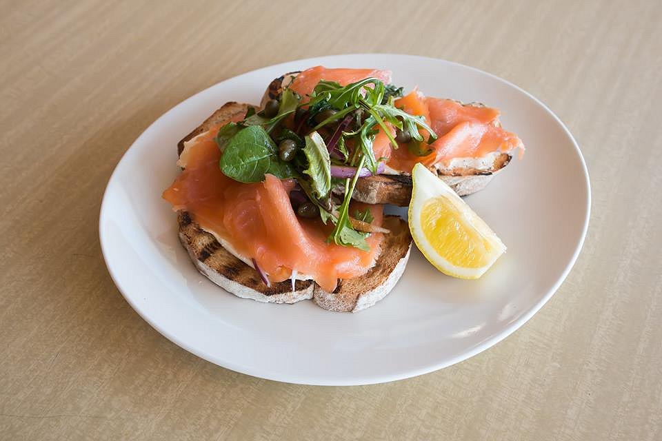 Salmon Brushetta – A beautiful rendition of a classic; Salmon, ciabatta bread, red onion and cream cheese topped with capers. The breads decidedly soft insides are enveloped in a crunchy exterior where the fresh salmon and generous amount of cream cheese rests upon.