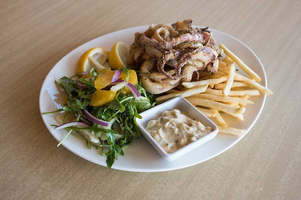 Lemon Pepper Calamari – The generous serving of calamari is lightly seasoned in a lemon pepper flour that mixes pepper and citrus for an amazing seafood palate dish. Delicious in its own right the calamari is served with a side of chips and the chef’s salad. For us the salad mixed rocket, celery and flavourful bursts of orange segments for a truly Mediterranean collective of fruits and vegetables.
