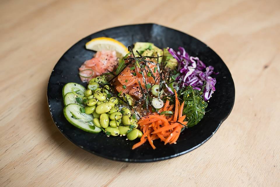 Hawaiian Salmon Poke with purple cabbage, pickled carrot, cucumber, edamame beans, green onion, toasted sesame, nori, avocado, seaweed salad, pickled ginger and apple soy sauce – Poke bowls are the newest food trend in the Southern Hemisphere at the moment, essentially a deconstructed sushi (with some added extras), this bowl is a rainbow of colours. It is sweet, sour, crunchy, and the salmon sashimi is perfectly smooth and freshly cut; it is the fitspo clean eater’s dream come true. The Hawaiian Salmon Poke is the perfect lunch or dinner meal, and is everything your palate could want – taking you all the way to the Hawaiian seaside.