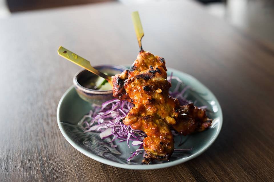 A pleasant, aesthetically pleasing space dominated by a black and yellow industrial theme. The tables are well spaced and large enough to allow for easy sharing. The menu is large, divided into smaller, larger, curries, rice and noodles, salad and sides. For those who don’t like to choose a “Thai Feast” for $55 allows you to sit back and be taken care of.