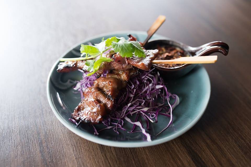 Gail Golek Nua Satay Moo Ping (skewers) – Unable to decide between the three delicious sounding skewer small plates we went with all 3. It’s a tough call but I’m going to go with the chicken as my favourite. Marinated in what is referred to as Golek sauce the flavour is very tropical with underlying coconut and fruity flavours. The beef skewers are hidden under a thick and chunky satay sauce. The beef is well marinated so the flavour comes from the meat as well as the delicious topping. The pork were the most simple of the 3. A light thai style marinade complements the pork without overpowering it. Each skewer is grilled to give the protein a nice char on the outside. Despite being thin cuts of meat they retain a juicy centre. They are all served with a dipping sauce that has the perfect balance of heat, sour and sweet.