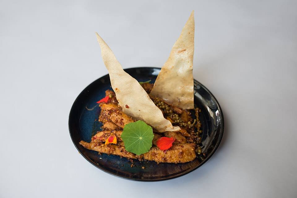 We started off with the Butter Cereal Prawn; SA Spencer Gulf extra large king prawns lightly battered and tossed in butter, cereal, crispy egg floss, curry leaves and chilli. Using cereal inside batter is all the rage at the moment, and with the results achieved, rightfully so. These generously sized king prawns were crunchy on the outside, and moist and succulent inside. Combined with bits of curry leaf and chilli, it was a great way to start the meal.