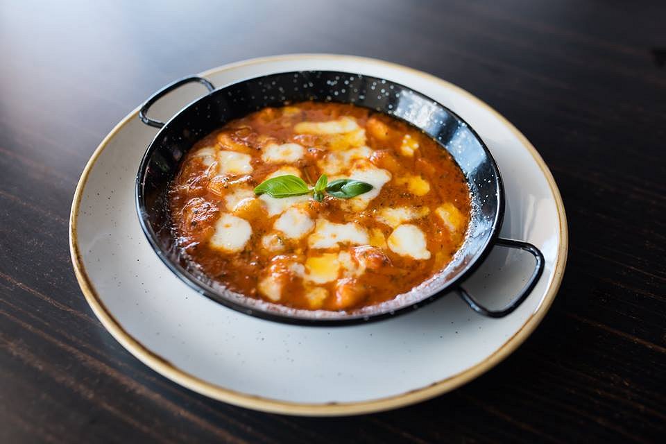 The Gnocchi alla Serrentina shines in its simplicity. The same delightful Gnocchi, this time served in a napoletana sauce, complemented with parsley and basil. The freshness of the tomato is bold and overwhelming, a taste so rare from commercial kitchens. Buffalo mozzarella and pecorino are layered on top and the dish is finished under the grill so it’s served bubbling hot with oozy cheese.