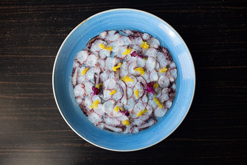 Our meal started with the Octopus Carpacicio, perfectly paired with a Hentley Farm Riesling. It almost seems a shame to take a fork to this work of art. Its ever so delicate flavour is lifted with a sprinkle of good salt and a glug of oil. The paper thin discs of Octopus tentacle practically dissolve on the tongue and the citrus notes in the Riesling add another dimension.