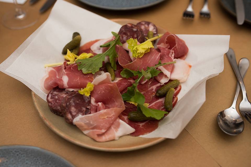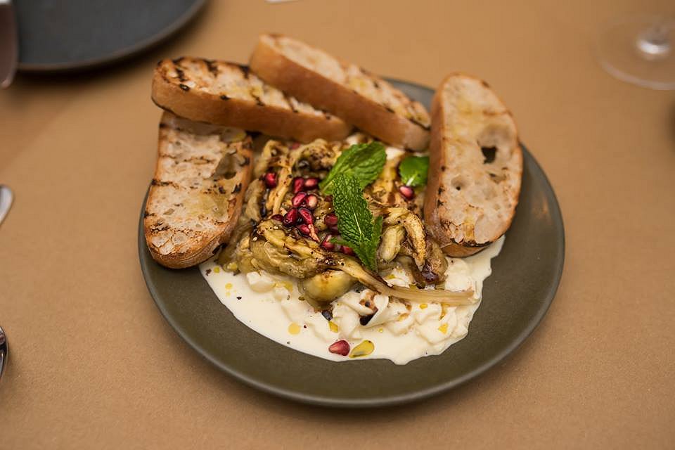 We began the spring menu tasting with two starters, a Smallgoods Selection consisting of local, imported and house-made smallgoods with grilled bread, and Stracciatella, which contained smoked eggplant, pomegranate and crostini. These dishes were paired with a glass of 2014 Serafino Bellissimo Nebbiolo. The red wine, with undertones of dark cherries, spice and rhubarb was smooth and of a medium weight with a lingering bite to finish. The earthy tones of the berries and spices paired exceptionally with the smoky flavours of the meat and eggplant in the two dishes. The pops of pomegranate and mint in the Stracciatella cheese dish created refreshing and sweet undertones that lightened the whole dish while the smoky meat selections of rich venison, capocollo and prosciutto were fresh and didn’t overpower one another with their intense flavours.