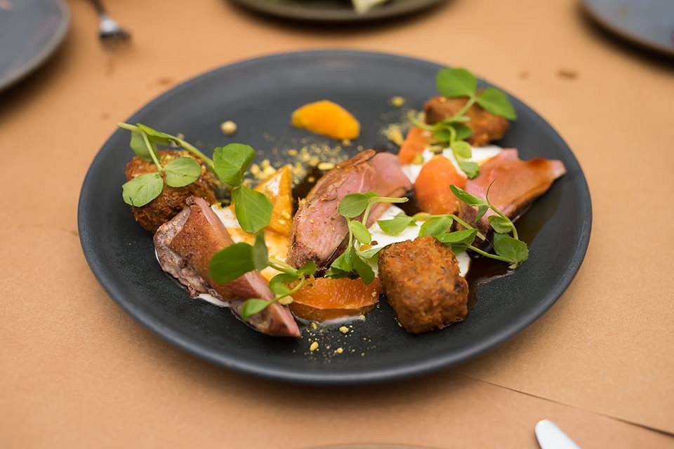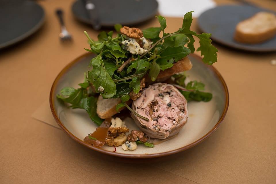 Next we moved on to the small dishes; a Nomad Farm Chicken, Pork and Walnut Terrine with pickled pear and gorgonzola cheese, and Harissa Roasted Baby Carrots with saffron and caraway labne, brik pastry and sticky raisins. With these two dishes, we had the selection of two complimentary white wines to pair. The first, a 2015 Serafino Reserve Chardonnay, with French oak and fruit tones, and the other, an award winning 2016 Serafino Bellissimo Pinot Grigio, a fruit based wine with Nashi pear and green apple for sweetness. This was the wine I chose and it added another level of freshness to the two dishes; lightening the tangy tones of the pear and blue cheese in the Nomad terrine while also adding smoothness and complimentary flavours to the mint and citrus in the roasted carrot dish. The earthy flavours of the mixed meats and the walnuts were complimented with the lightness of the rocket and pickled pair in the terrine while the Harissa roasted baby carrots were full of flavour but were light and fresh while still holding a slight crunch.