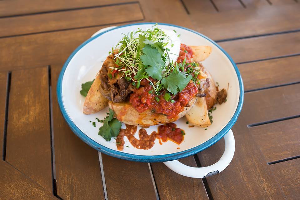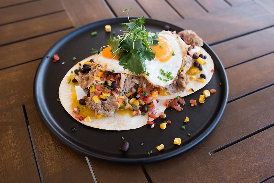 Pulled Pork Nuevo’s Rancheros – tortilla with corn salsa, melted feta, pulled pork, two free-range gooey fried eggs and chives topped with hot sauce. Everyone on the table agreed that this was the highlight dish of the evening. The pulled pork was succulent and juicy and complimented the hot, tangy sauce and the creamy feta. I really enjoyed the addition of a gooey fried egg, which was cooked to perfection.