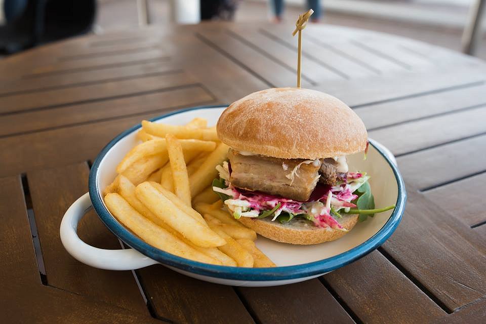 Crispy Skinned Pork Belly Roll – crispy skinned confit pork belly served with an apple and celeriac slaw, pickled beetroot, aioli and chips. We were all super excited to try this dish as it sounded something right up our alley. It is common that in some situations pork belly can be quite dry. The pork belly used in this dish was juicy and soft. This complemented the crunch of the slaw, beetroot and dressed with a creamy aioli.