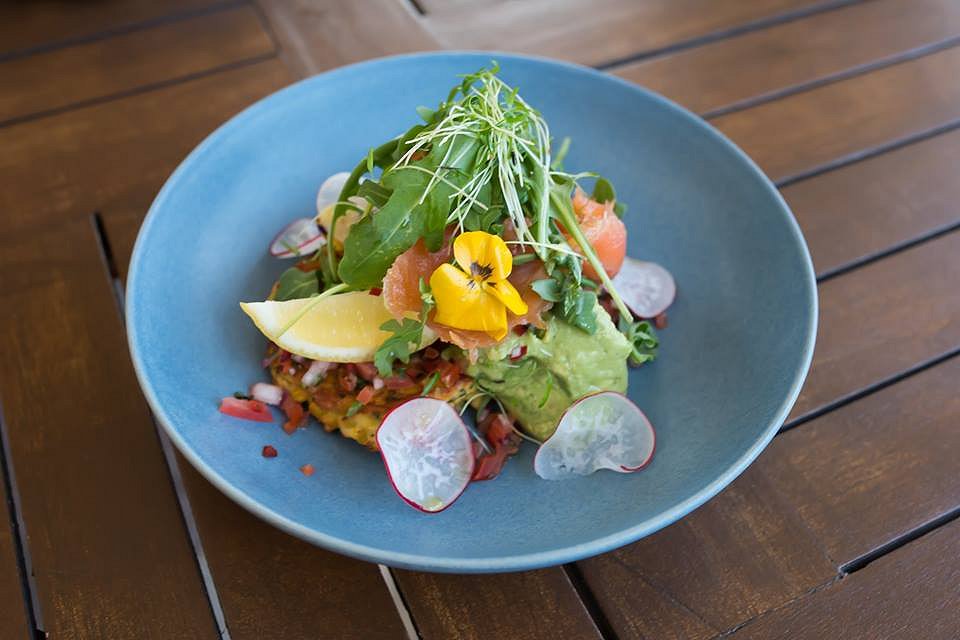 Tasmanian Smoked Salmon and Corn Fritters served with smashed avocado, fresh tomato and capsicum salsa, wild rocket, shaved radish and lemon. I absolutely loved the sweet flavour of the corn which paired with the salty salmon and creamy avocado. The fresh rocket and radish gave the dish a fresh element and crunch.