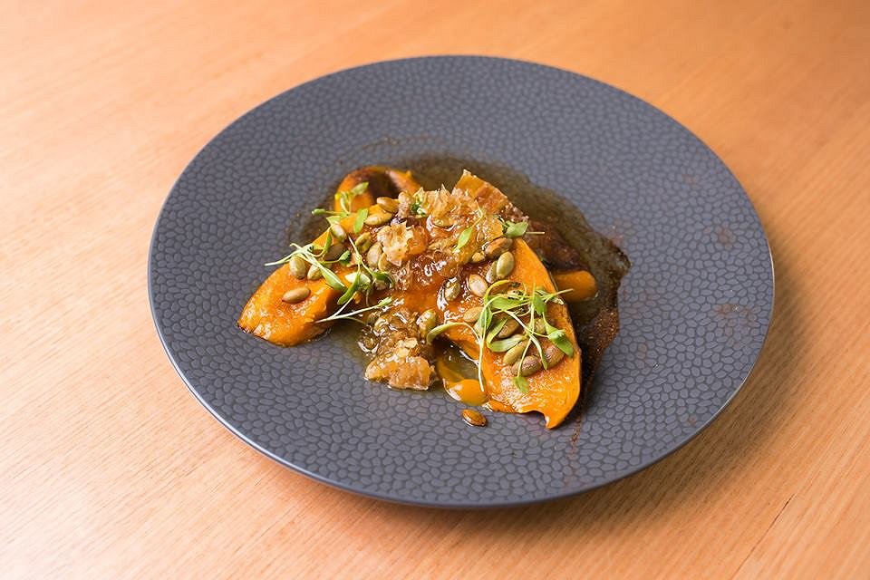 As you’d expect, pumpkin heroes this dish, and is served in five different ways on one plate. Roast pumpkin, burnt pumpkin puree, pumpkin seeds, pumpkin ash and house made pumpkin is served with chucks of honey meed and real chunks of honeycomb. The combination is exciting, and taps into the pumpkin pie flavours of an American Thanksgiving – but with an Aussie twist.