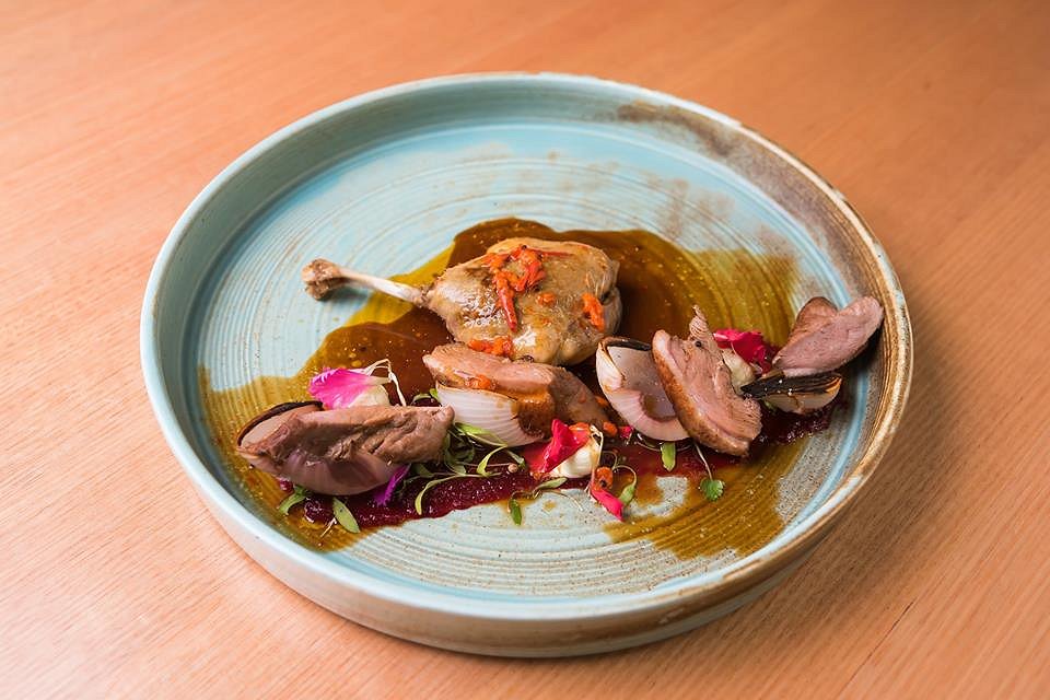 If you’re a fan of Peking Duck, then this is the dish for you! Artfully plated on a wide turquoise dish, the leg and breast of a sous vide, locally sourced free ranged Pekin Duck is doused in an incredible duck broth and then lathered with a hoisin based sauce. The duck is magnificently tender, which is a feat in itself seeing as duck is probably the most difficult poultry to cook to perfection. A beetroot relish, kafir lime cream and confit chilli then finish off the five star dish.