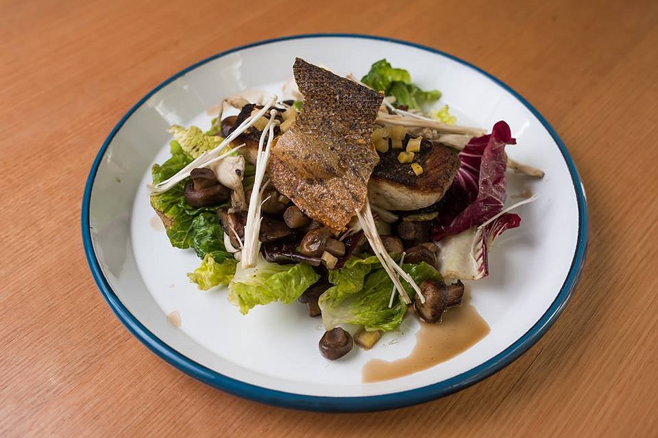 A monster serving of the best and cleanest barramundi in the world is pan seared with a crispy skin, and plated amongst wild mushrooms of the Adelaide Hills, a mushroom consume, Radicchio and preserved lemons. Along with the rich barramundi flavour, earthy and Asian notes come through to make a perfectly balanced dish.