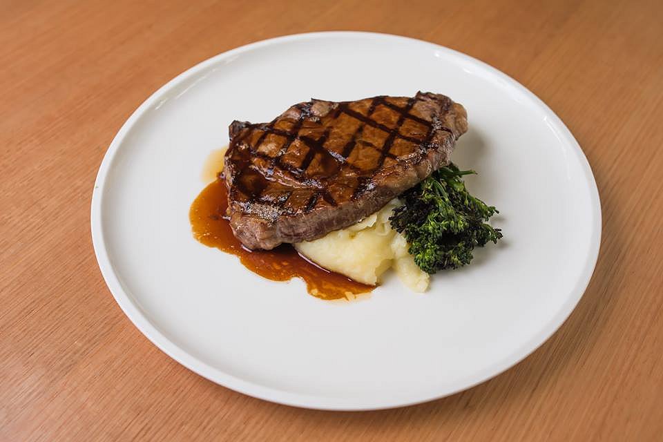 An enormous serve of grass-fed Angus steak is cooked to your liking, with a beautiful char-grilled pattern on top. A smooth and smokey mash potato, which is the perfect accompaniment, seasonal greens and a beef Jus are served with the monstrous steak. This dish is real man food at its best, so be sure to bring your appetite for this one.