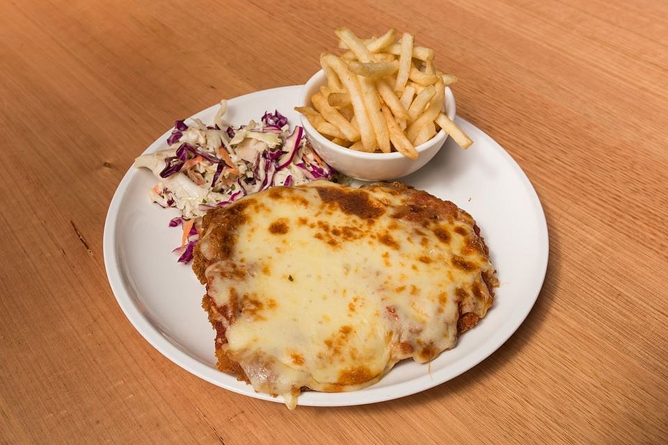 Chicken Parmy – butterflied chicken breast lightly crumbed or tenderised beef topside lightly crumbed, topped with Napoli sauce and mozzarella. How can you go to a pub and not order a chicken parmy, my absolute go to and favourite pub menu item. The beautiful tender chicken breast was crumbed lightly which we liked, as sometimes the crumb can be way to thick and over powering. The chicken and crumb is then topped with a rich napolitana sauce and cheesy mozzarella.