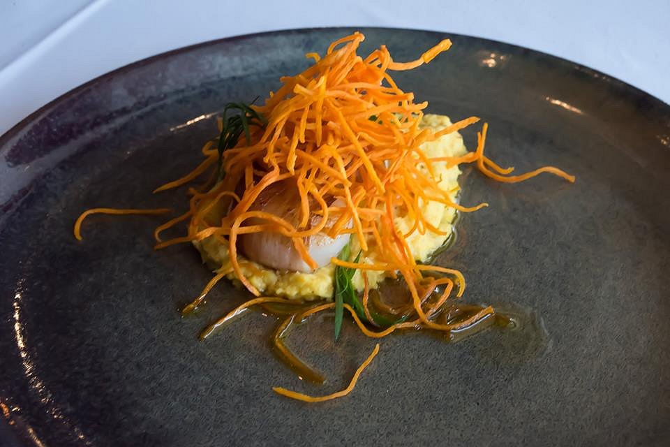 The Agnello Groppa was a surprisingly Middle Eastern inspired dish, quite a change from this kitchen but as always refined, sophisticated and utterly delicious. I’m going to go so far as say it was my favourite of the day because of how well each component brought something fabulous to the dish. Spread across the plate is a delectably smooth mousse of eggplant with strong notes of cumin. Slices of blushing lamb are adorned with heirloom carrots in purple, orange and yellow and a salsa verde pungent with parsley, mint, lemon, garlic and olive oil dresses the plate. The addition of whipped goats cheese is exactly what the dish calls for, it adds a lively punch to the earthy elements.