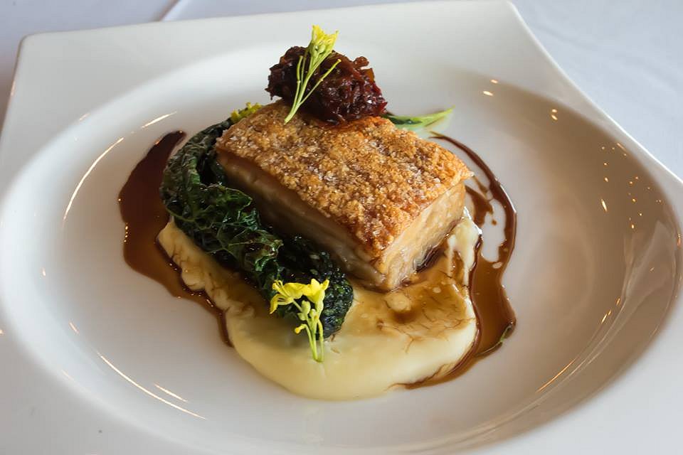 If pork belly is on a menu I consider it a must have. The pork in the Pancetta Di Maiale has been sourced from the Murray Valley and has a robust, rich pork flavour. It has been slow cooked in spiced duck fat and I’m sure this helps in building up that incredible depth. An immaculate crackling is a little difficult to manage with a knife and fork. I end up just picking it up and biting it and I’m rewarded with a loud crack. The magnificent accompaniment to the pork is soft semolina that is reminiscent of gnocchi entrée that I fell in love with earlier and a couple of strands of cavalo nero which always pairs so well with pork. To round everything together is a pear and semi dried capsicum relish that adds a touch of heat and sweetness with its classic intense flavour.