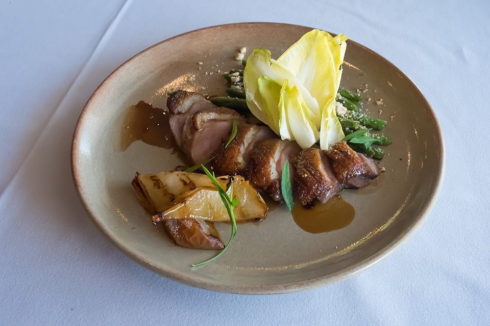 Having long been a fan of the duck at Assaggio the Anatra was an easy selection to make, This time quite a difference from the Maryland of L’Orange that it once was, today we have a honey glazed spice duck breast. I warn those who do not like a sweet main course to stay away from this one. But for those, who like me adore a sticky plate of lemon chicken or honey prawn this is right up your alley. The breast of duck is well spiced but it is the sweetness of honey that dominates. Next to the duck is a sliced caramelized pear that could easily sit on a dessert plate. Event the beans have a hazelnut crumb that tows the line between sweet and savory. Simple bitter leaves of bitter witlof provide refreshing respite from the sweetness.