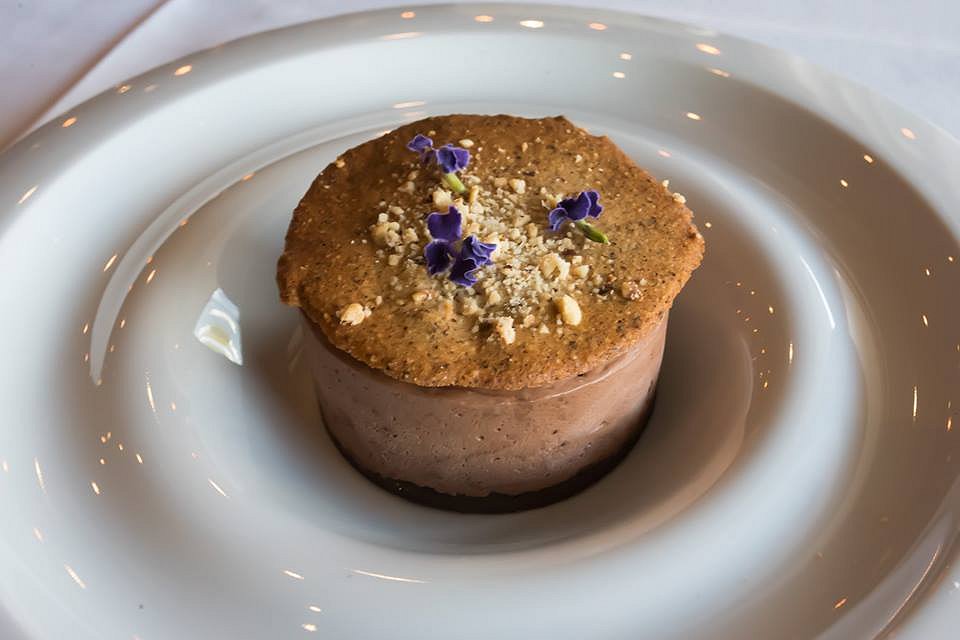 Next up is the chocolate lover’s dessert Semi Freddo, which combines 3 of my favourite dessert elements – chocolate, raspberry and hazelnut. What you can’t see in the photo is a core of vibrant raspberry fudge through the heart of the decadent chocolate semi freddo. A disc of hazelnut praline caps the dessert hiding the excitement below. I adored the rich indulgence of this dish and the praline acts to break it up slightly.