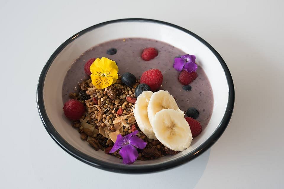 The best part of the Granola is that if (when) you love it you can buy it to enjoy at home too. The buckwheat and nuts results in a very pleasing texture that is extremely crunchy. It is served with a homemade blueberry and coconut yoghurt that must contain some mashed banana as this comes out as the dominant flavour. Topped with fresh fruit this dish is light but satisfying and suitable for vegans.