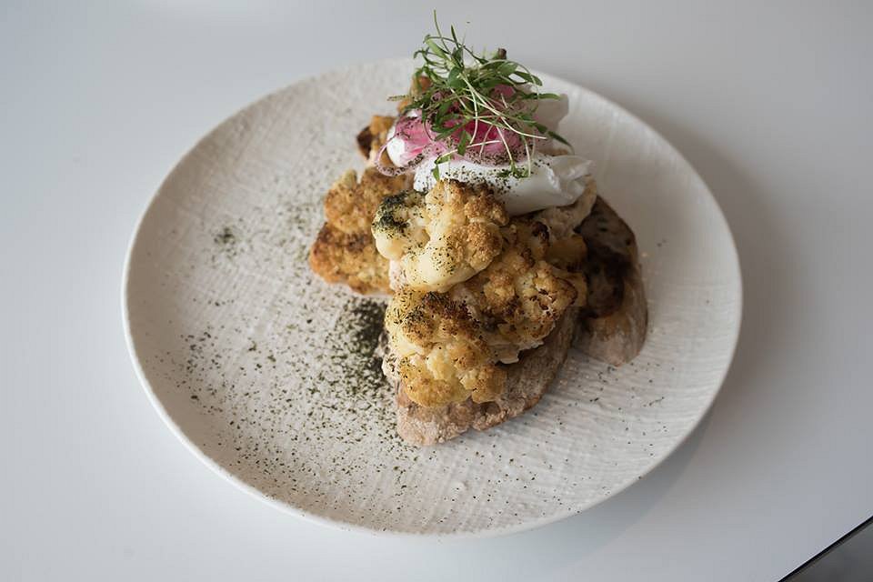 Speaking of the health conscious, I’d suggest the Scrambled Tofu would appeal to them. I on the other hand, prefer to stay away from anything to do with the ubiquitous bean curd, but in the interest of the full experience I sliced off a piece of black rice sourdough topped with, poached eggs and what looked like porridge. Well-seasoned with sesame and miso I was taken aback by how much I enjoyed both the flavours and texture of this dish. To be fair, the roasted cauliflower on the side was fabulous and I could eat a plate of just that.