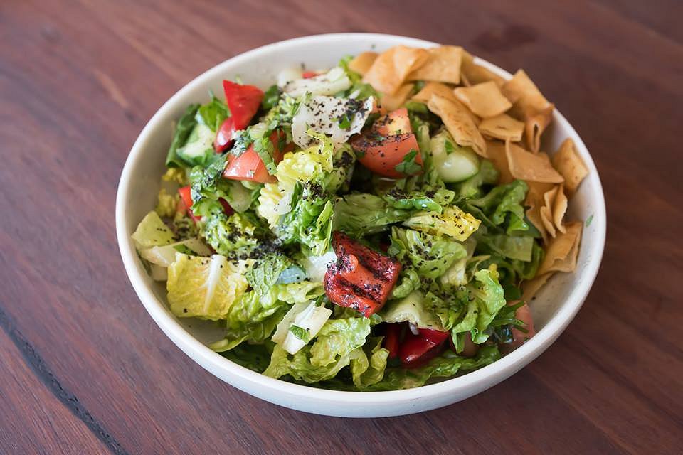Not to mention the Fattoush Salad. A great combination of crispy Lebanese bread, filled with a colourful, delicate salad which includes: fresh salad greens, cucumber, tomato, capsicum, parsley, sumac, sweet pomegranate, molasses, lemon, garlic and drizzled with olive oil.