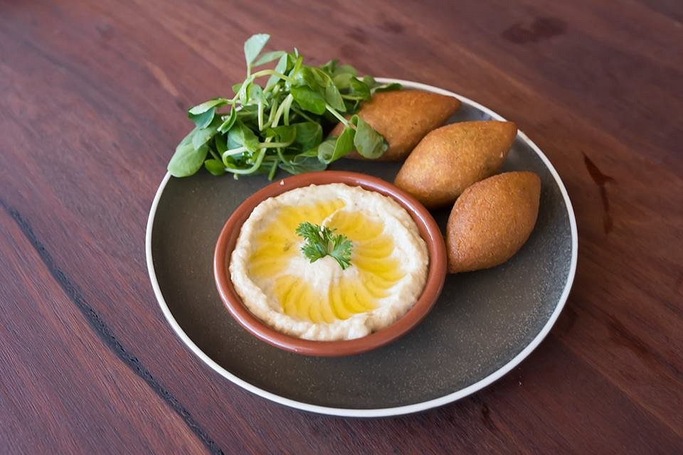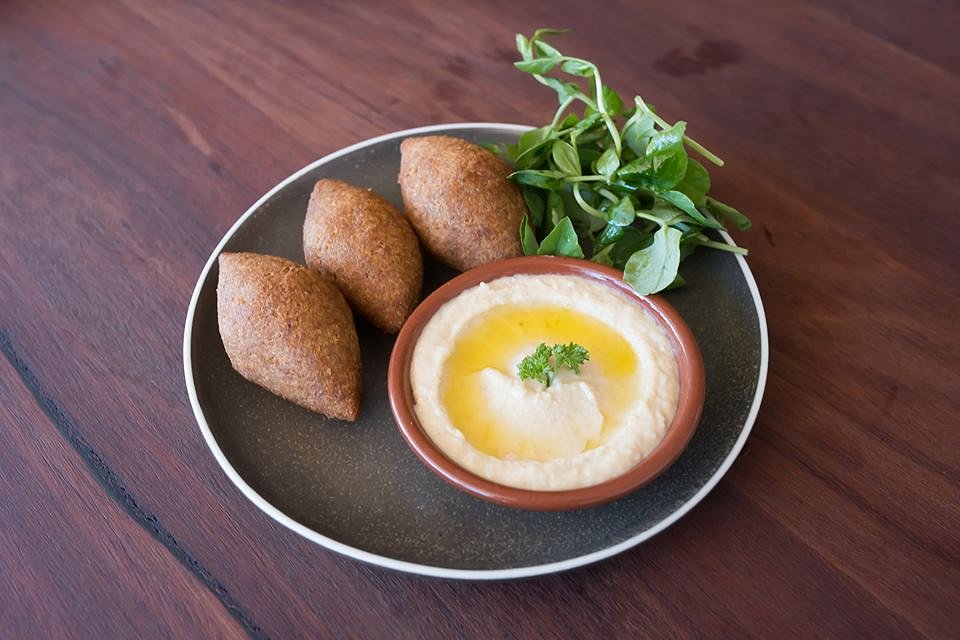 Let’s start with Kibbe. Kibbe is made with a crispy, golden casing of ground meat and crushed wheat, filled with finely seasoned mince meat, onion, spices, pine nuts, served with smooth hommus and tangy Lebanese pickles.