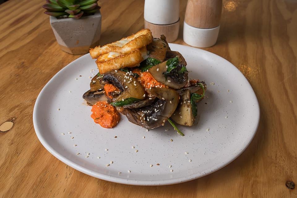 The Garlic and Thyme Mushrooms with roasted capsicum and cashew pesto on rye, with added grilled halloumi was next to taste. Like the Popcorn Chicken Waffle Cone dish, is a perfect size for a smaller main or an entre to share. The Halloumi was cooked well, was very fresh and was also not super salty which made you savour the cheese flavour more with each bite. The combination of this cheese with the mushrooms and roast capsicum purée was a beautiful flavour combination of spice and smoky hints from the cooked mushrooms. The smoothness of the roasted capsicum with its slight tang was delicious and left me wanting to take that home as a dip for my cheese and cracker plate.