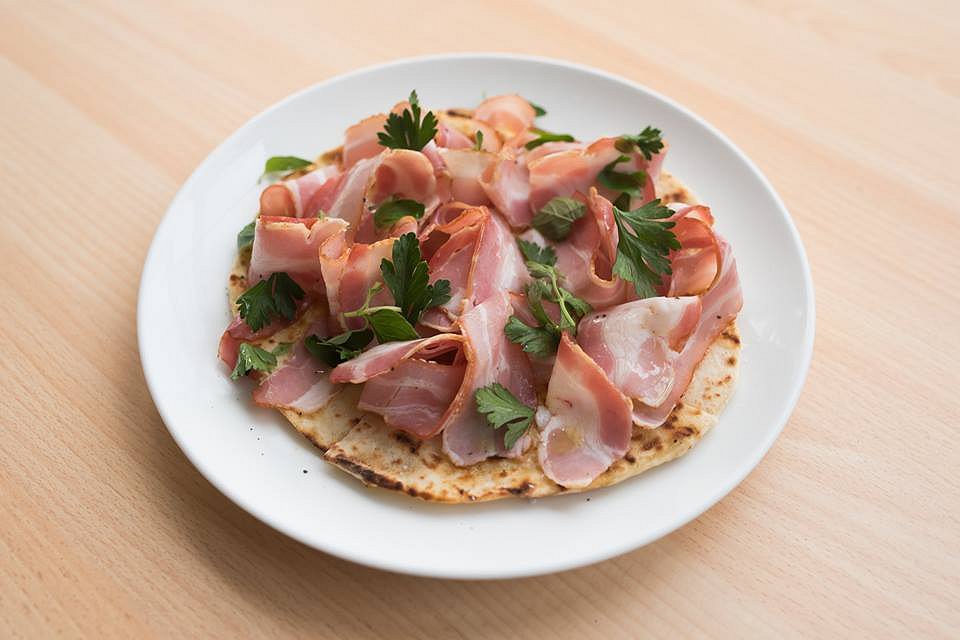 The Shaved Porchetta Plate was next to taste. The Porchetta was thinly sliced and wonderfully seasoned. Containing a BBQ smoky flavour, the meat was well balanced with the olive oil, the pita bread and the coriander garnish. Even though was a meat focused dish, it was surprisingly fresh and made me want to come back for more. I could have been happy just to fill up on this dish all night, but I knew there were more exciting dishes to come.