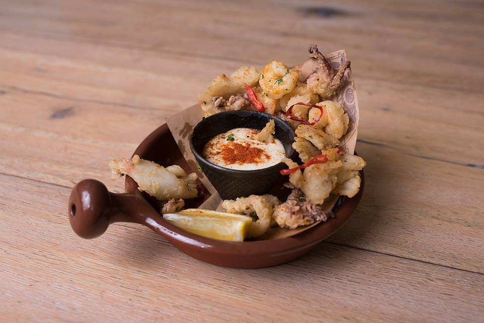 I love the presentation of the Fritto Misto, golden seafood piled around a bowl of garlic & lemon aioli, looking like it wants to dive in there as much as I do. A little zing of cayenne pepper, the seafood responds so well to the sauce. Lightly battered and fried then perfectly salted the piece of fish, prawns and squid have a delicate texture and taste incredibly good.