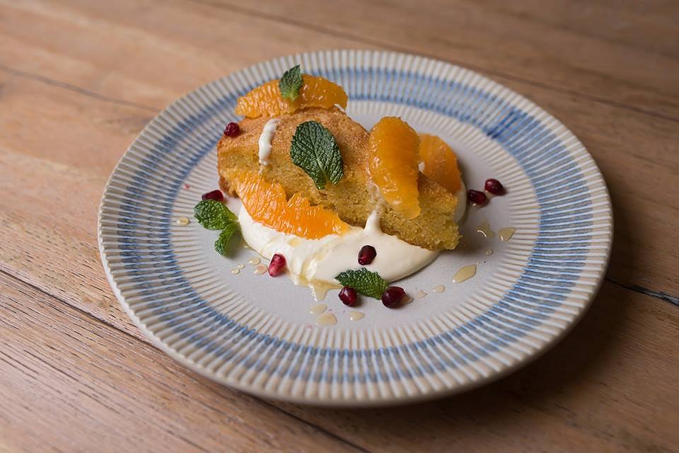 The Orange Blossom Polenta Cake oozes fragrant orange flavour and is light and fluffy. It needs nothing but mint leaves and a little whipped cream to finish but the garnish of pomegranate seeds and perfectly segmented oranges are aesthetically pleasing. Despite being delicate, the citrus flavour is bold and uplifting.