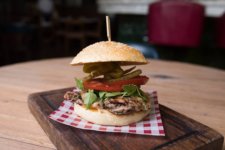 Jamie pays tribute to his mentor with his Gennaro’s Chicken Club. A white burger bun topped with sesame seed, sandwiches succulent chargrilled chicken thighs, paired with rocket, fresh tomato and mortadella. A few pickles including those delicious pickled whole chillis from the meat and vegetarian planks. Finished with a garlicky and spicy ‘nudja mayo’ which brings the burger together.
