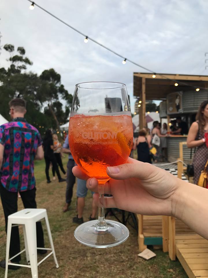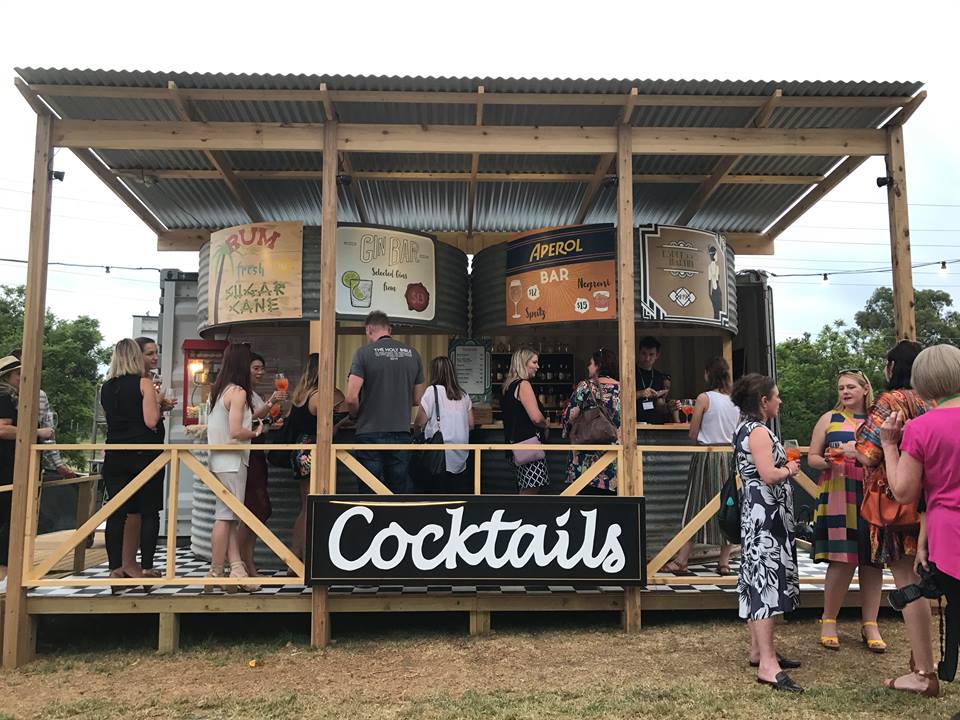 The rustic looking cocktail bar, made from wood and what appeared to be two corrugated iron water tanks, served up a range of drinks for guests, with the main cocktail being Aperol Spritz.