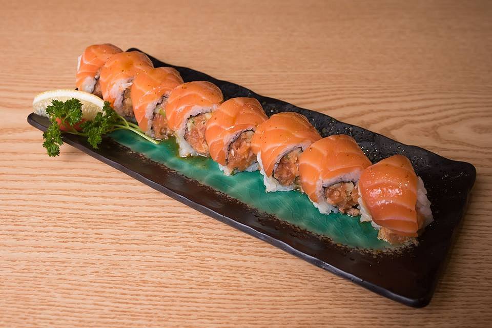 The Fire Fighter Roll was third to taste. Having spicy crabmeat and cucumber inside and spicy tuna and a thin jalapeño slice on top; you would need a fire fighter to hose you down after eating. Definitely for those who enjoy a bit of spice in their meals, this dish even looked spicy. The tuna and jalapeño gave a kick of heat as you took a bite, leaving a tingling sensation in your mouth. The fresh cucumber helped balance these hot flavours and cooled the palate, while the tuna and crabmeat was fresh and again very light.