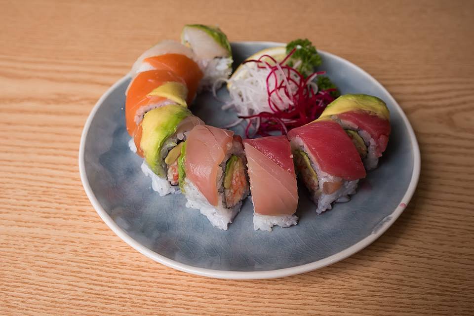 We then tasted the Rainbow Roll. This beautiful and colourful dish definitely represented a rainbow on the plate. Inside consisted of crabmeat and avocado, while the toppings were the Chef’s choice of any fish and avocado. We ended up receiving tuna, salmon and even more yellowtail on top. The sweeter sushi was again very fresh and light. The flavours were cooling and all the fish combinations balanced perfectly with one another. We polished off this plate very quickly, showing the Rainbow Rolls were definitely one of our favourites of the night.