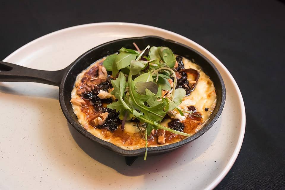 Another favourite of entrée of ours, which is also a Vegan and Gluten Free is the Wood Oven Baked Haloumi. The baked cheese is served in a hot dish and adorned with sweetened currants and walnuts. Altogether the components make up a beautiful play on flavours of sweet and salty, and textures of soft and crunchy.