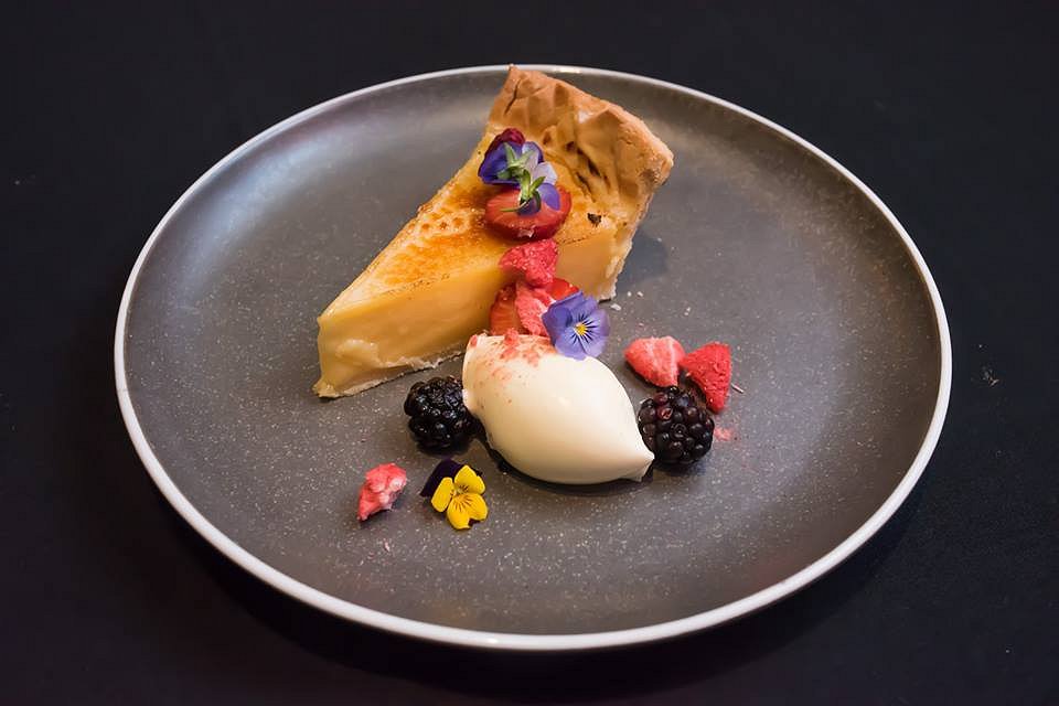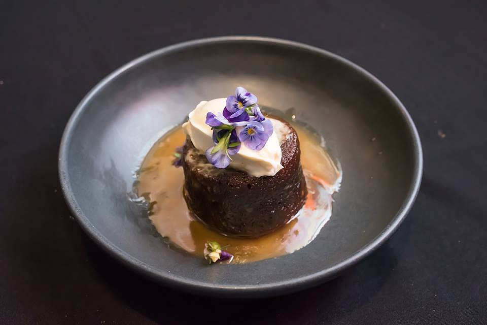 To seal up the night’s already spectacular offerings, we are served a Baked Lemon Tart with Fresh Berries and a Sticky Date Pudding with Butterscotch Sauce and Double Cream.