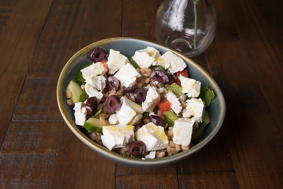 This salad is made primarily of pearl barley, mixed with tomato, capsicum, cucumber, olive, and crumbled feta. Although we initially looked past this salad’s description in comparison to the others, this ended up being our favourite of the day – being not only tasty, but incredibly filling too!