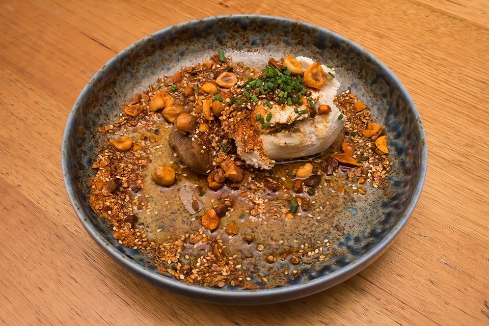 A couple of drinks in we were ready for some food. Hellbound doesn’t have a kitchen so everything is put together behind the bar. There are little snacks of the likes of crisps, olives and peanuts. The bigger snacks proved to be substantial, tasty and I was overwhelmed by their sophistication given their humble beginnings. We start by smothering thick slices of bread with Whipped Tahini, date butter and chunky hazelnut dukkah. It’s the Hellbound signature dish with good reason. The irresistible fluffy tahini paired with the sweet date butter is a sumptuous match.