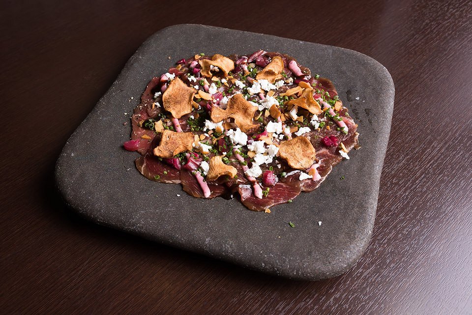 Next was the Wagyu Carpaccio, and this was easily the highlight of our evening. A very Instagram-worthy plate of food, the thinly sliced, melt in your mouth Wagyu was complemented with an Ume (Japanese plum) mayo, handmade Jerusalem artichoke chips, feta cheese, and a Japanese pickle. Sweet, salty and crunchy – the perfect combo.