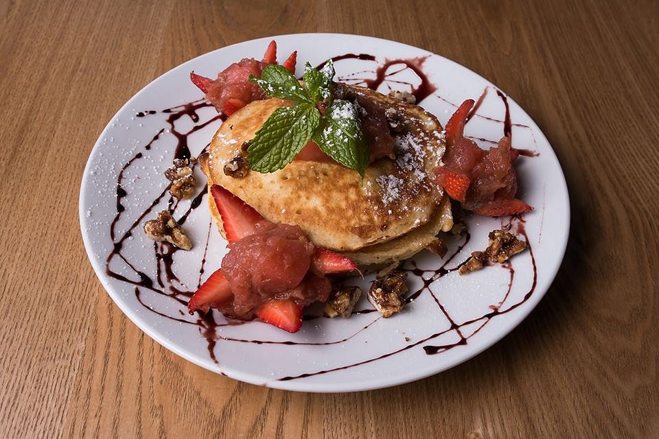 I have probably made this very clear in my previous blogs, but I am obsessed with pancakes. By the time these landed in front of us, I was getting pretty darn full. However, as soon as the smell of sweet rhubarb and warm, cakey pancakes hit my nose I was somehow hungry again! Fluffy bites of golden pancake danced with the warm rhubarb puree, lovingly playing between vibrant fruit and decadent cake flavours. A drizzle of chocolate and maple syrup took this experience to the next level, as well as the playful strawberries which were cut to act as a bowl for the rhubarb. I was in heaven!