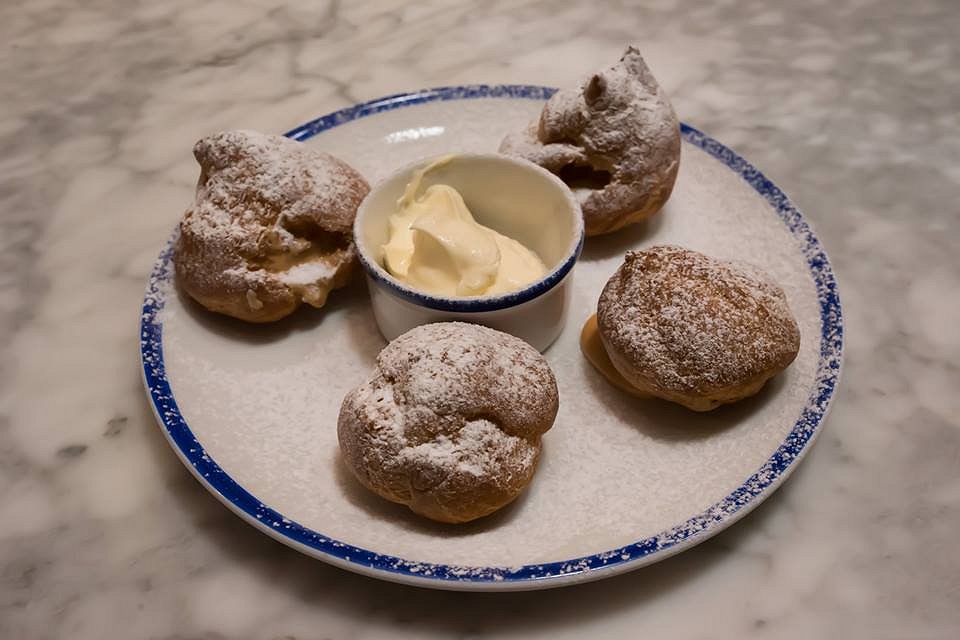 Four generous sized Profiteroles are pumped full of salted dulce de leche, that is satisfyingly salty and oozes nicely when its shell of choux pastry is broken. To keep things light crème fraiche. Dulce de leche oozes out its salty