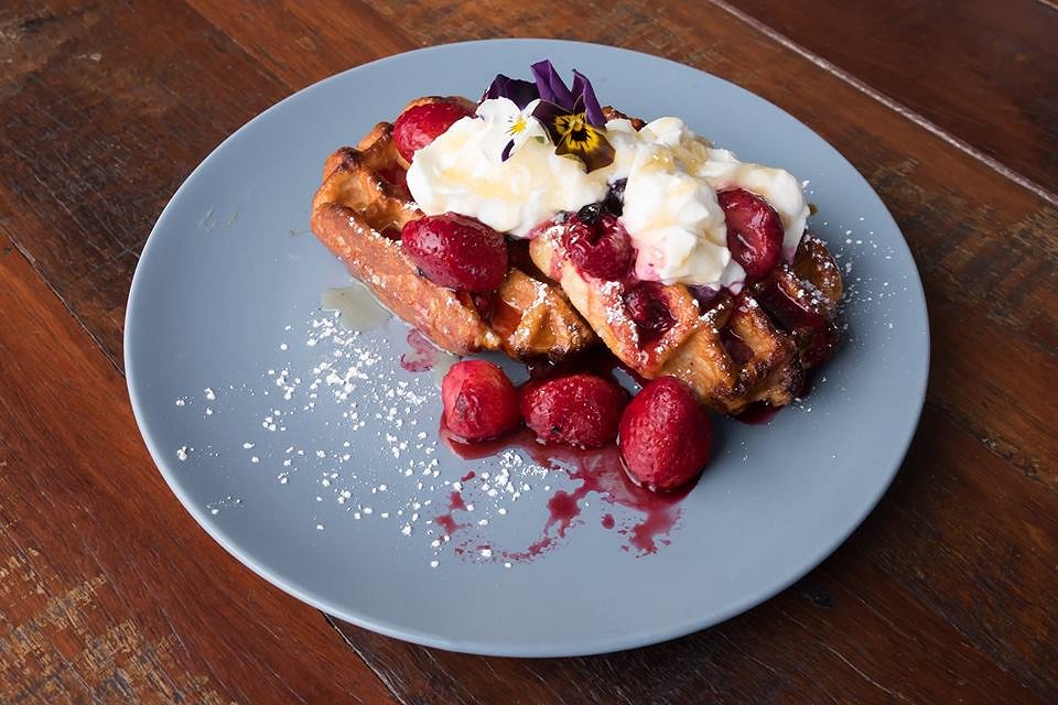 More of a traditional waffle, this version consisted of fresh mixed berries and a dollop of Greek yoghurt. The strawberries that decorated the edge of the plate seemed to have been stewed, enriching the sour notes of the fruit and adding a softer texture to the dish.
