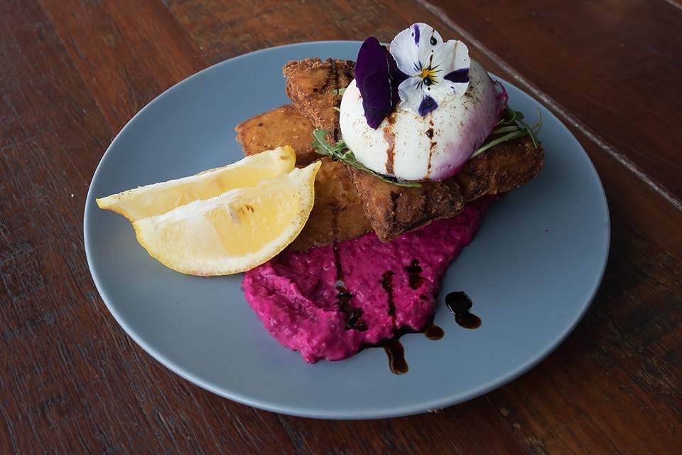This dish took us by surprise with the presentation absolutely blowing us away! The stack of hash brown not only looked delicious but was perfectly seasoned and satisfyingly crunchy on the outside and fluffy on the inside. The yolk from the poached egg served on top of the hash brown tower and the tangy beetroot relish complemented the texture of the hash brown itself. According to James, this dish outsells all the others ten to one and, now that we’ve tasted it, we can definitely see why!