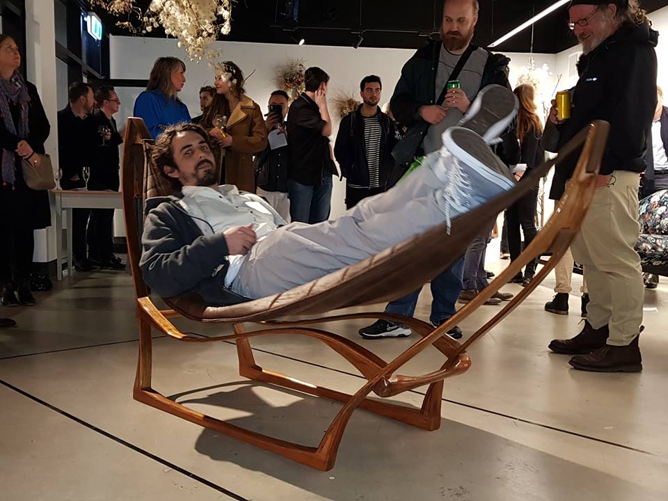 Furniture-maker, Luke Makris, has been making furniture since he was a teenager. His dad ran a lounge suite manufacturing company, where Luke learned the trade. Luke was a graffiti artist but decided to put his artistic ability and his furniture-making skills together to create exotic pieces. Luke’s favourite piece of his is the Hammock, which everyone was so eager to lay on.