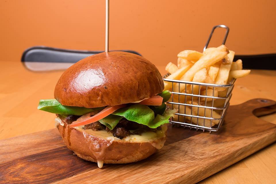 Served on a wooden board alongside some chips, this burger really had the lot – lamb, tomato, lettuce, roasted capsicum, and Swiss cheese (once again, perfectly melted). The lamb was crisp and well-marinated – almost like a yiros but in burger-form! To top it off, the tzatziki sauce added a cool, refreshing touch to the whole burger.