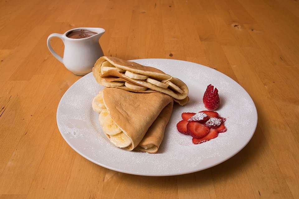 Two folded pancakes filled with banana, this dish is almost reminiscent of crepes! However, one bite of the airy, fluffy, pancakes will remind you of what you ordered again. Served with ice cream, and, of course, Nutella, a request can also be made to add strawberries to the order!