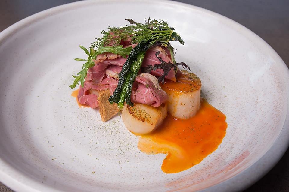 Scallop, carrot, pastrami, rye